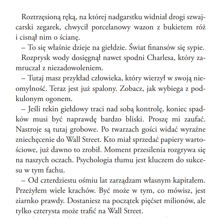 Osiemnastego listopada umieściłem na blogu wpis z frazą „otrzepywanie pcheł” w tytule. Była tam wskazówka, by odpowiedzi szukać w książce „Wiele do stracenia”, kiedy Freshet przyszedł do Charlesa. Jak zakończyło się spotkanie? Podrzucę mały fragment powieści: