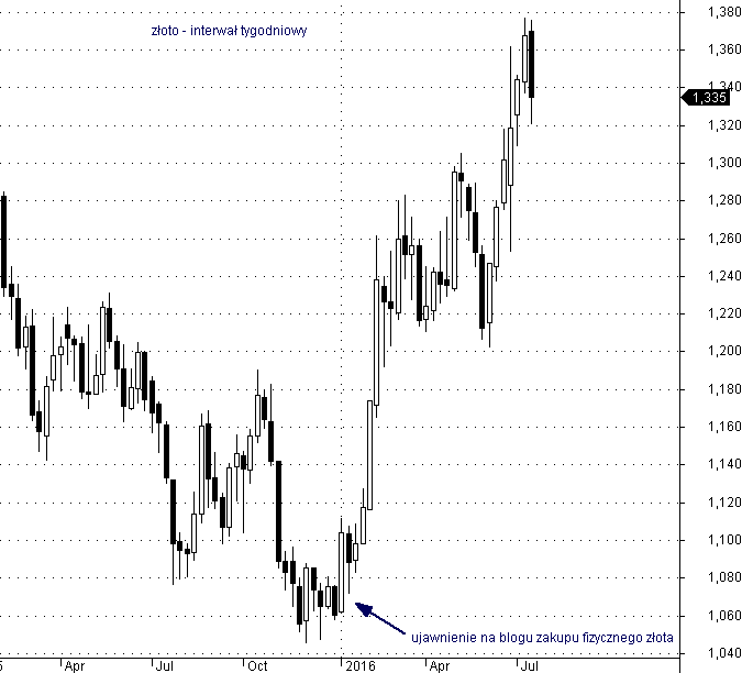 Potem, gdy kurs spadł odpowiednio nisko, sam zakupiłem fizyczny kruszec i dałem też o tym znać na blogu. Był to rok 2016.