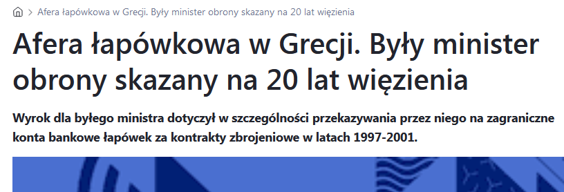 Ponad dekadę temu na karę 20 lat więzienia został skazany za łapówki grecki minister obrony.